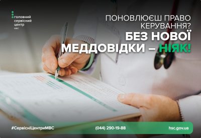 Позбавили водійського посвідчення? Важливо знати: після завершення строку позбавлення ви не можете автоматично повернутися за кермо. Аби знову керувати транспортними засобами на законних підставах, потрібно пройти визначену процедуру. Однією з обов’язкових умов є отримання нової медичної довідки щодо придатності до керування транспортними засобами. Без неї сервісний центр МВС не зможе продовжити процедуру повернення посвідчення водія. Звертаємо увагу, проходити огляд у медичному закладі охорони здоров’я та отримувати відповідну довідку можливо тільки після завершення терміну позбавлення.  Якщо пройти медогляд раніше визначеного строку, то така довідка буде недійсною. Чому потрібна нова медична довідка? Відповідно до Порядку видачі та обміну посвідчення водія, особа, яка була позбавлена права керування, зобов’язана подати до сервісного центру МВС такий пакет документів: паспорт із відміткою про реєстрацію місця проживання (паспорт для виїзду за кордон, або ID-картку та витяг про місце проживання); реєстраційний номер облікової картки платника податків; медичну довідку про придатність до керування транспортним засобом. Наголошуємо: попередня довідка, навіть якщо її термін дії не закінчився, не приймається для поновлення права керування транспортними засобами. Це пов’язано з необхідністю повторної перевірки стану здоров’я людини, яка тимчасово була усунена від права керування. Нагадуємо, якщо вилучене посвідчення водія видавалось вперше на 2 роки, документ не повертається. Для відновлення права керування транспортним засобом, необхідно заново пройти теоретичну підготовку в автошколі та скласти теоретичний іспит у сервісному центрі МВС. Далі пройти практичну підготовку в автошколі та скласти практичний іспит у сервісному центрі МВС. Водійський документ знову видається  на 2 роки. Якщо було вилучено постійне посвідчення водія, для його повернення необхідно скласти теоретичний та практичний іспити в сервісному центрі МВС. Пам’ятайте, повернення водійського посвідчення після позбавлення права керування – це відповідальний процес, що передбачає суворе дотримання встановлених процедур. Консультацію щодо послуг сервісних центрів МВС можна отримати за телефоном (044) 290-19-88 або на сторінках Головного сервісного центру МВС в Фейсбук та Інстаграм. Відповіді на найпоширеніші питання та корисну інформацію черпайте на сайті.
