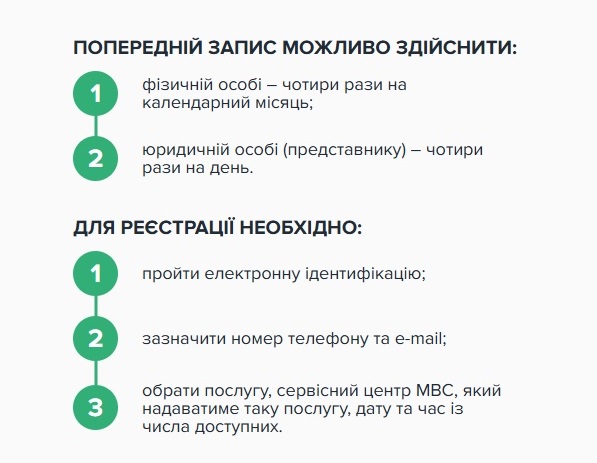 Нагадуємо, що кількість записів лімітована. Для фізичної особи доступно 4 реєстрації через Е-запис на місяць. Для юридичних осіб встановлений ліміт 4 записи на поточний день.