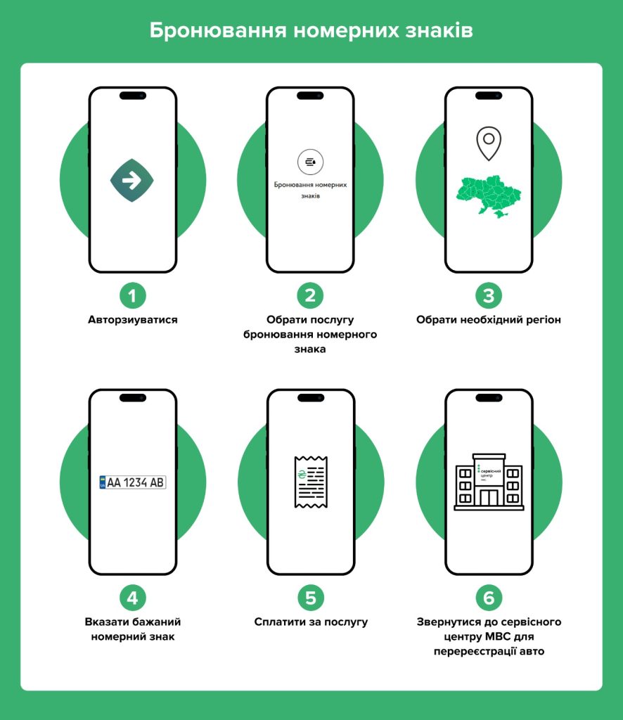 Бронювання номерних знаків онлайн. У Кабінеті водія можливо обрати та забронювати номерний знак терміном на 10 днів. Вартість послуги: