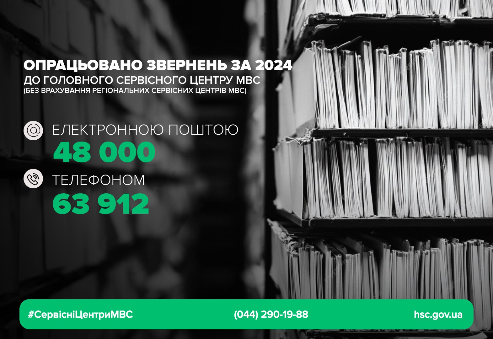 За 7 місяців цього року Головним сервісним центром МВС (не враховуючи звернень до регіональних та територіальних підрозділів), зареєстровано 26 095 вхідних документів, розглянуто 2 432 адвокатські запити, 768 – запитів на отримання публічної інформації, 5 227 – звернень громадян. Варто зазначити, що упродовж декількох років кількість зареєстрованих документів постійно збільшується. Так, у 2022 році фахівцями Головного сервісного центру МВС опрацьовано 11 тис. вхідних документів, у 2023 році – 28 тис., минулого року – 42 тис.