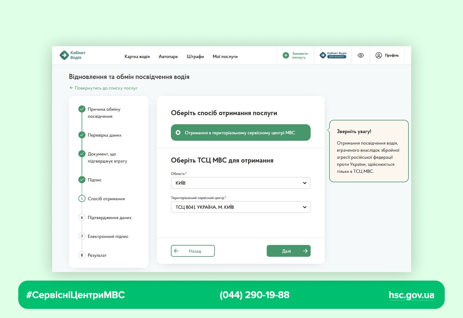 - вибрати сервісний центр МВС, в якому будете отримувати готове посвідчення водія;