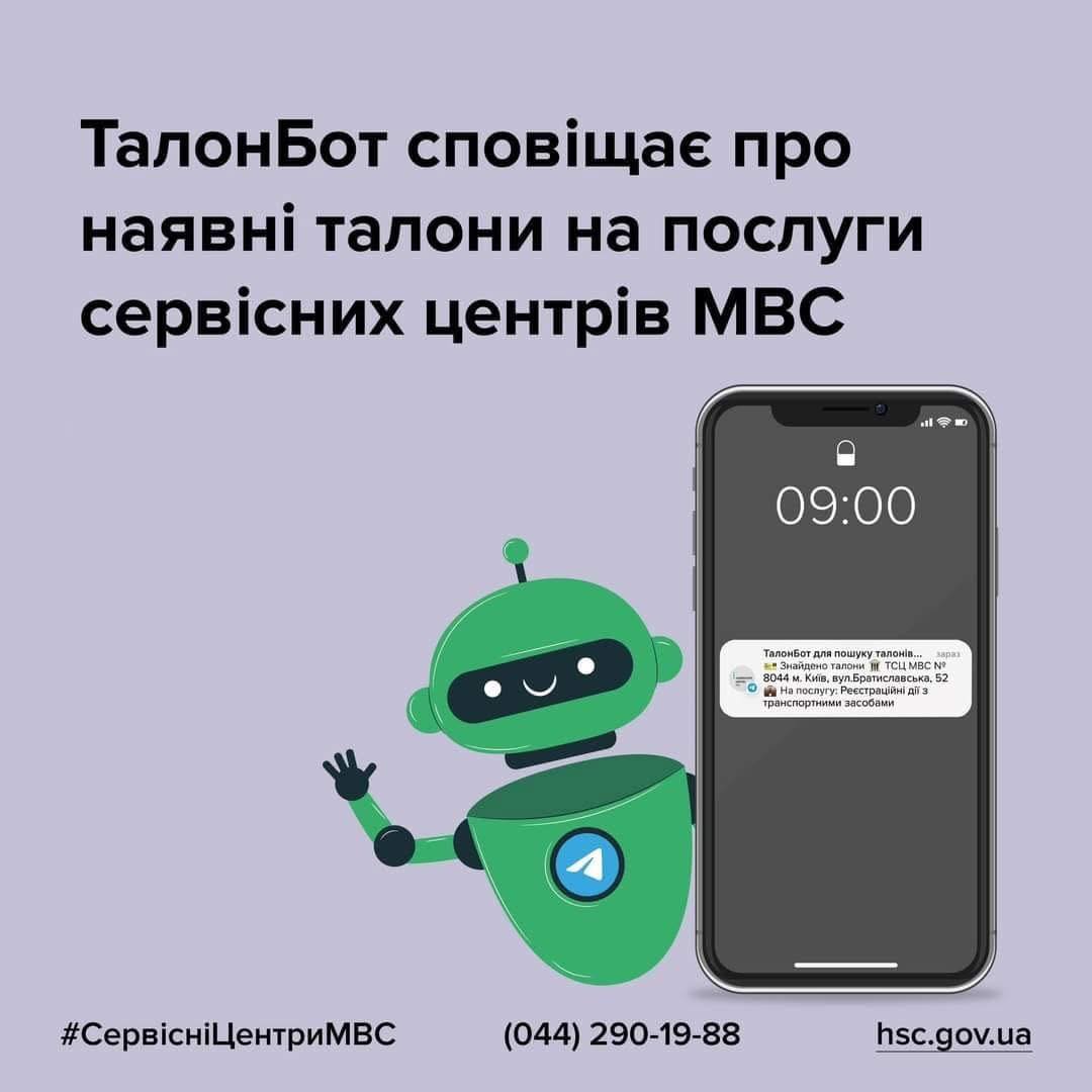 «ТалонБот» @hsc_talon_bot у Telegram допоможе знайти талон на бажану послугу
